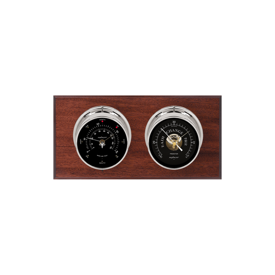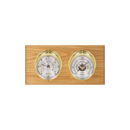 The Portland home weather station is an arrangement of Maximum instruments that measure wind speed and direction as well as atmospheric pressure, along with a 2-instrument mounting panel.
